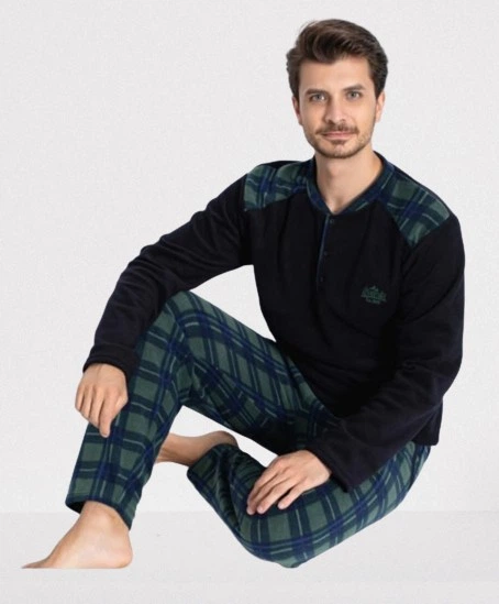 Пижама мужская флисовая штаны в клетку +кофта Pijama'n 2XL темно-синий