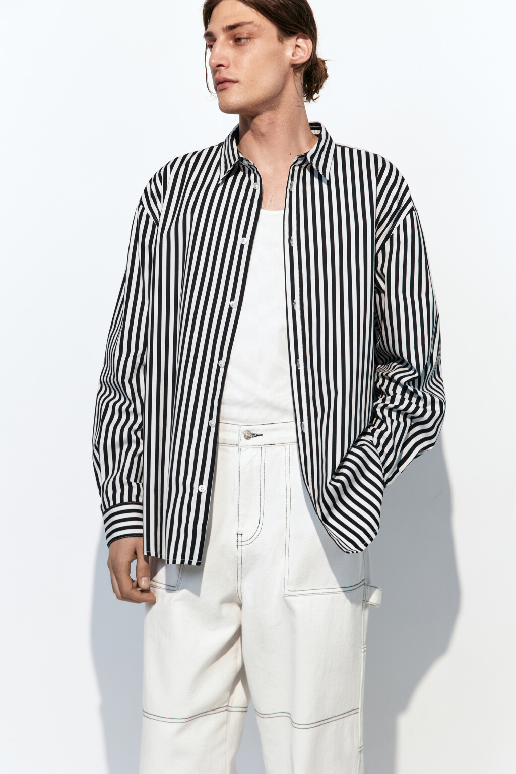 Рубашка прямая хлопковая в полоску 2423117008, цвет: черный (53) по