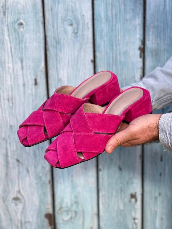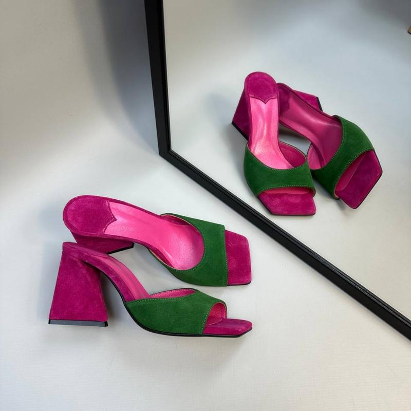 Сабо из натуральной итальянской кожи и замша женские на каблуке