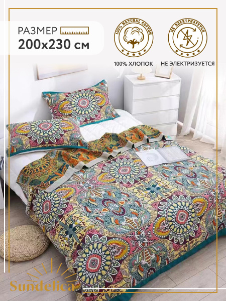 Покрывало на кровать Плед 200х230 см "Орнамент" Хлопок Муслиновое