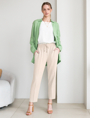 Брюки на резинке из льняного твила меланж. vilatte