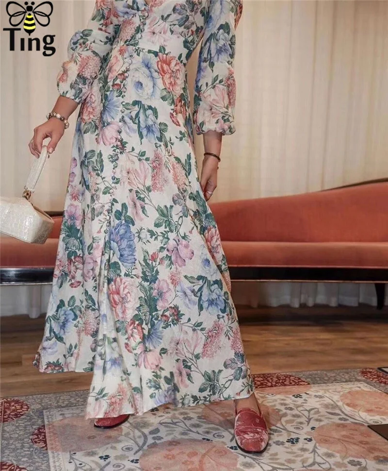Tingfly дизайнерские Подиумные стильные синие Цветочные Макси платья
